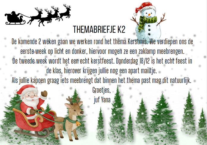 Deze week maken we plaats voor de kerstboom. Hieronder kunt u het themabriefje tot aan de vakantie lezen.